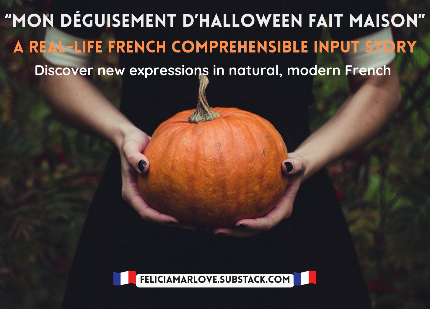 Découvre de nouvelles expressions courantes dans ce texte en français compréhensible (facile). J’y parle des déguisements d’Halloween que je fais moi-même. Les mots et expressions en gras sont expliqués plus bas.